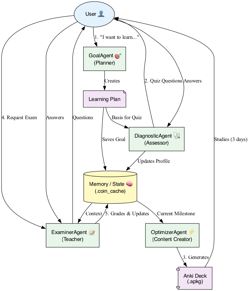 DiagnosticAgentcreates a baseline quiz to tailor the experience. - Study Phase:
